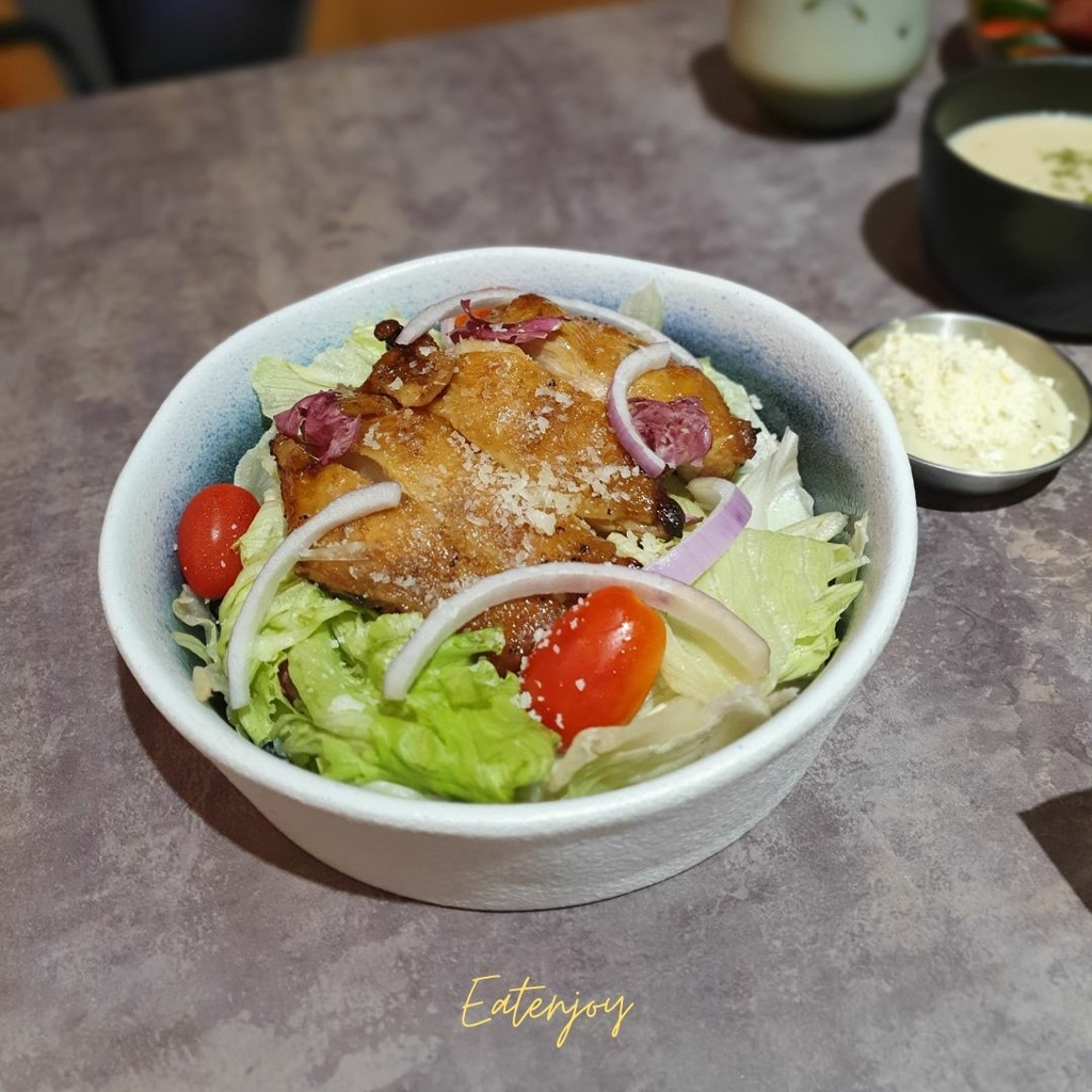 每餐來點鮮蔬是絕對需要的! 凱撒烤雞很嫩搭生菜很好吃,主要是沾醬蒜味不重,屬於清爽型的凱撒醬,另外撒上乾酪粉很好吃~
