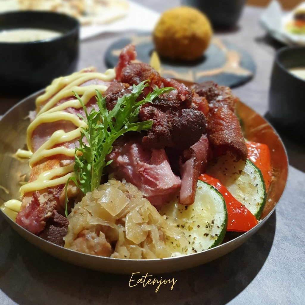 這個德國豬腳必須提,外皮Q軟肉很嫩,主要是吃起來有萬巒豬腳的感覺?!加上特製酸菜是有點台灣味的德國烤豬腳,我喜歡~