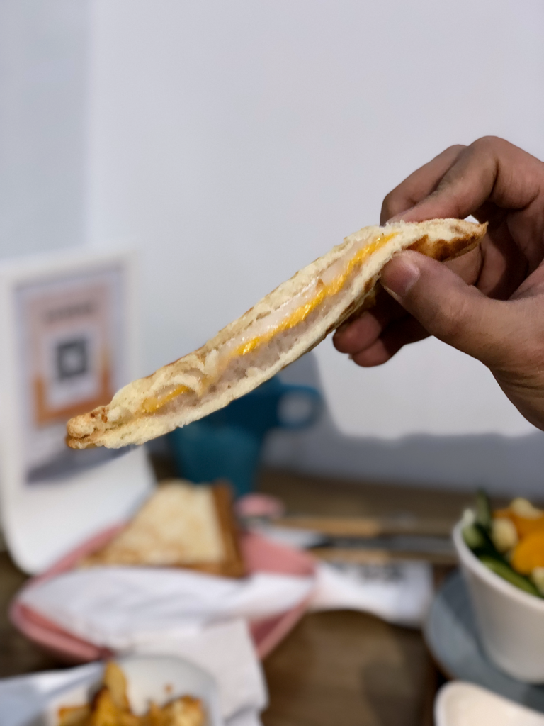 熱壓吐司、香甜芋泥、起司片、麻糬