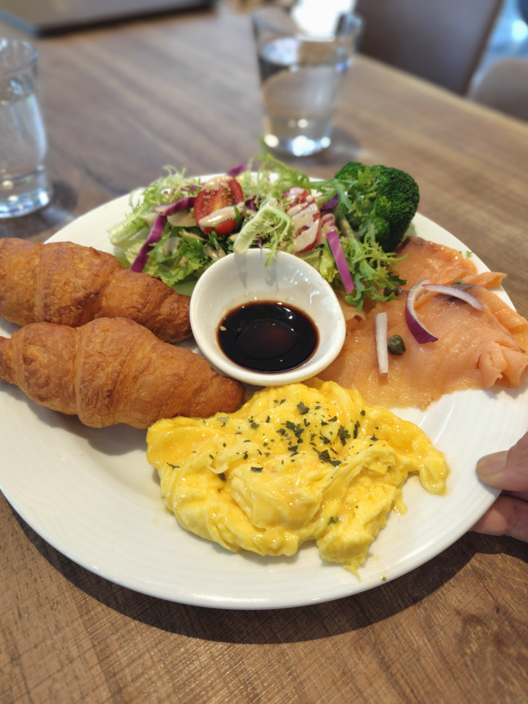 有厚度的挪威鮭魚口感很好,淡淡的煙燻味不會過鹹,單吃也很好入口。另外現烤可頌真的一定要吃,外皮的酥脆感超棒,一口咬下會有卡滋卡滋的聲音~