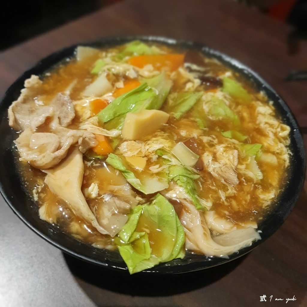 酸辣湯不是走嗆辣路線的湯底,入口的酸辣是溫和的,重點在湯料不少。