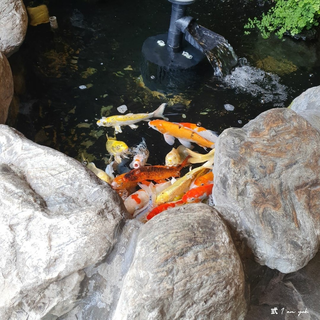 左手邊的小魚池,裡面的錦鯉應該都吃的蠻好的,手一靠近就以為有飼料會靠過來