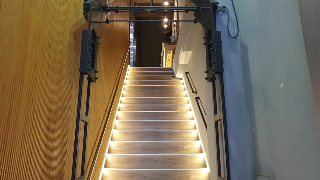 從入口處上二樓的樓梯,很明亮乾淨。我最喜歡的是天鍋宴有無障礙設施🩷,入口處的黑色機械升降可以協助家裡的長輩或者行動不便又想用餐的人上樓,真的很貼心~