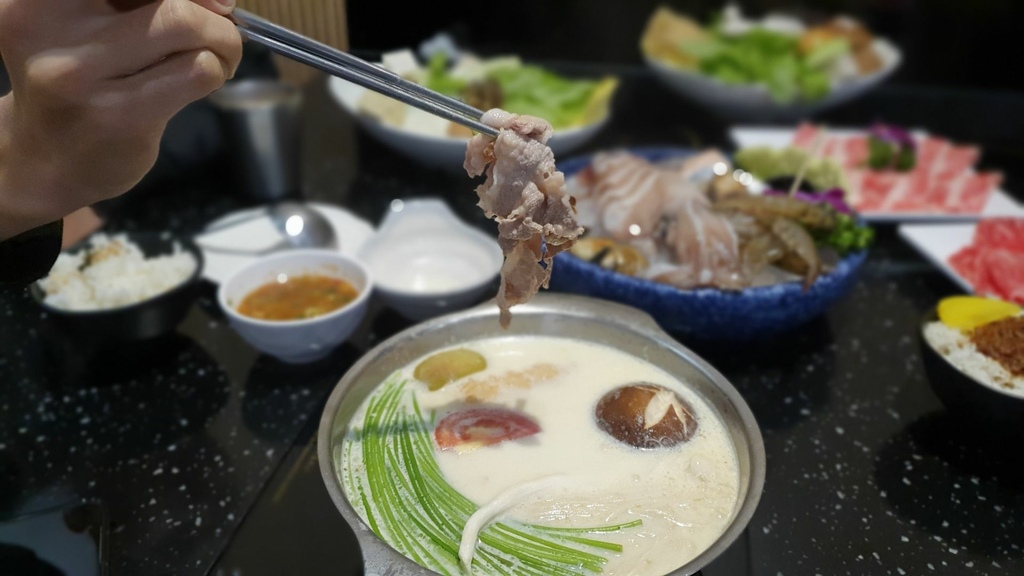海鮮的湯底其實我最愛牛奶鍋湯底,會有喝海鮮濃湯的感覺,入口不只有濃郁奶香還有鮮蔬跟海鮮的自然甜~