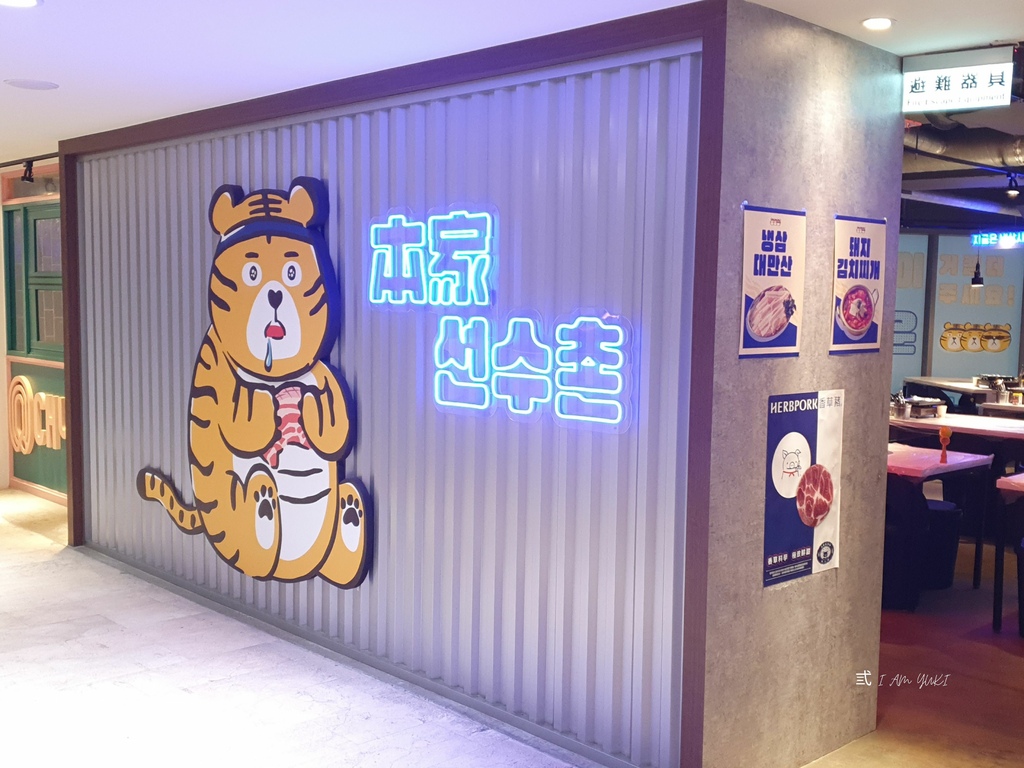 ▼可愛的老虎跟霓虹燈就是「本家選手村」的特色。本家選手村是來自韓國經營多年的本家長壽村,取名的用意是希望大家能像選手比賽完後,盡情的放鬆吃喝。