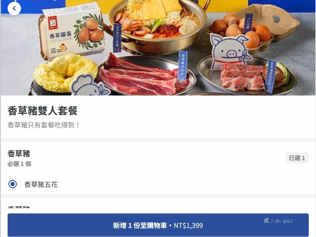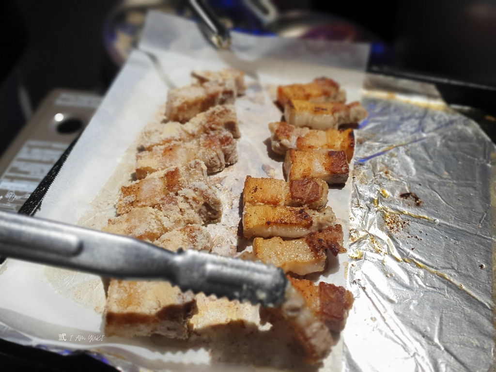 香草豬雙人套餐裡就包含了三種豬肉,有香草豬五花、香草豬里肌跟香草半月斧,光是豬五花就可以吃到原味跟起司兩種風味。真的是整桌的肉啊~🤣