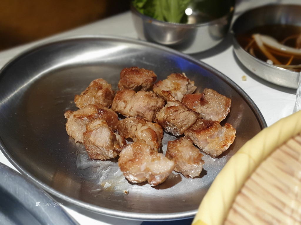 而且專人桌邊烤的豬五花真的很好吃,外皮酥香,內裡軟嫩多汁,就不包生菜單吃都很好吃。至於說好的韓國歐巴?沒有!是台灣歐巴🤣但秀氣的顏質真的讓人自嘆不如ㄟ