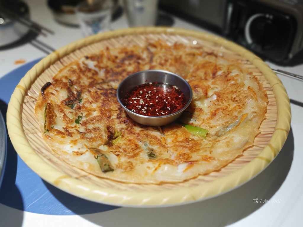 海鮮煎餅是套餐裡就有包含的,海鮮料十足,外皮微酥內層不會太厚,吃起來適口性剛好,是好吃的海鮮煎餅。如果不喜歡太濕軟或太酥脆的海鮮煎餅,本家的介於中間口感,可以嘗試。