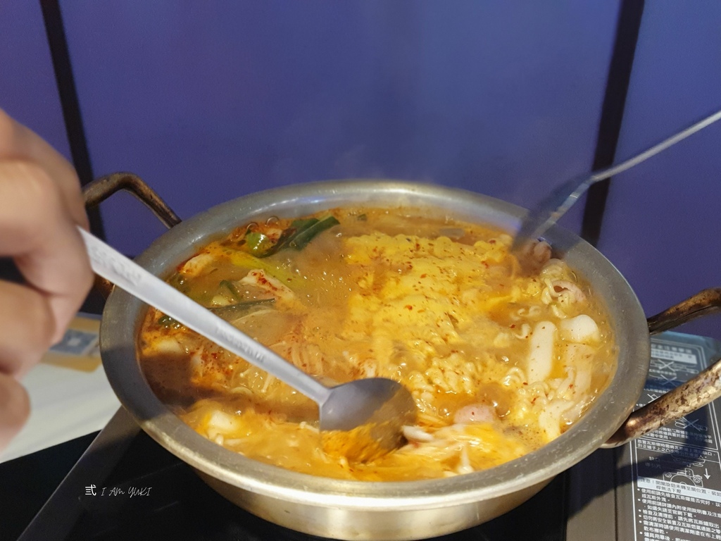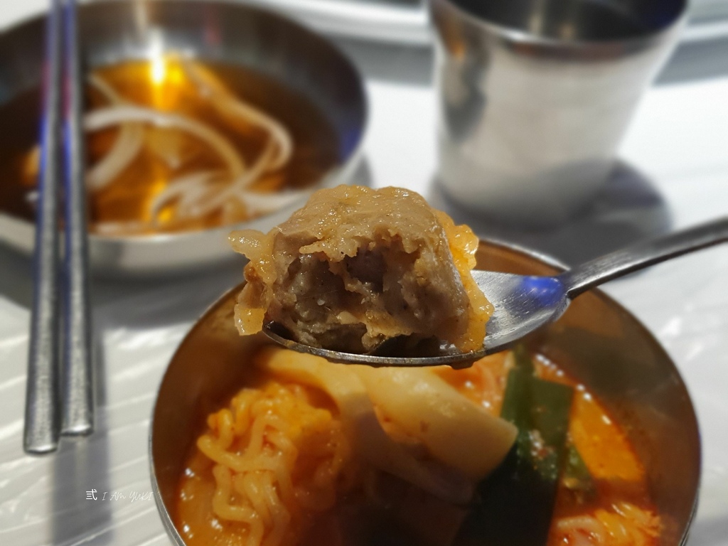 部隊鍋也是套餐的一部分!(雙人套餐來說,分量挺驚人...),部隊鍋請一定要吃起來!湯頭是特別熬過的很好喝,加上年糕、肉丸好吃到不行(年糕我跟朋友也是都覺得好吃的)