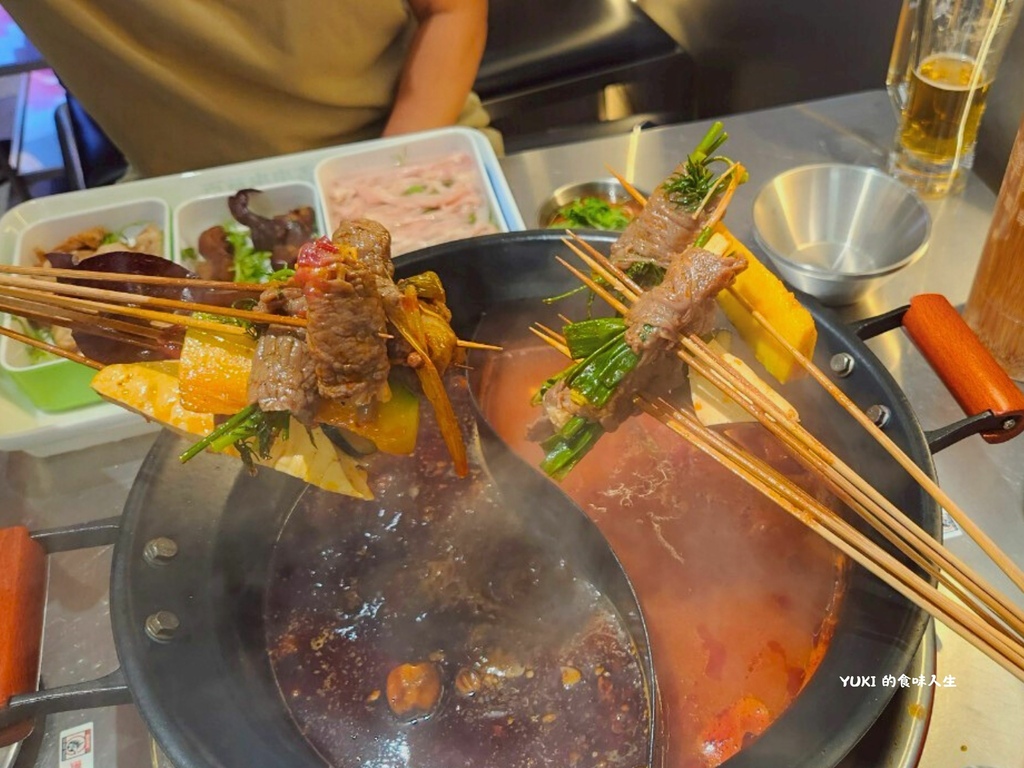 ▼一串兩吃,不僅能吃到紅湯風味的麻辣串串,還能吃到白湯裡串串的鮮甜味。