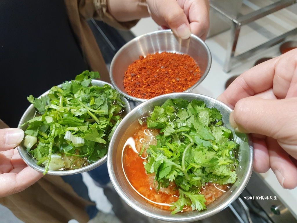 我自己喜歡的油碟是加香油、蒜泥、香菜跟紅醋,最後再來個香辣干碟粉,完美!![]()