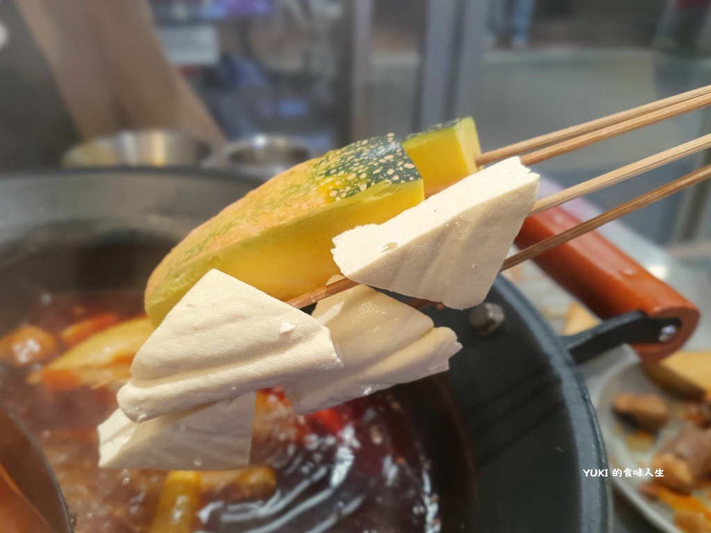 鬆軟甜香的南瓜跟臭豆腐是我每次必拿,「李鐵柱百草串串香」的臭豆腐是經典人氣款,涮過麻辣紅湯後吸附滿滿湯汁精華,臭香與麻辣完美交融,愛吃臭豆腐的人千萬別錯過!
