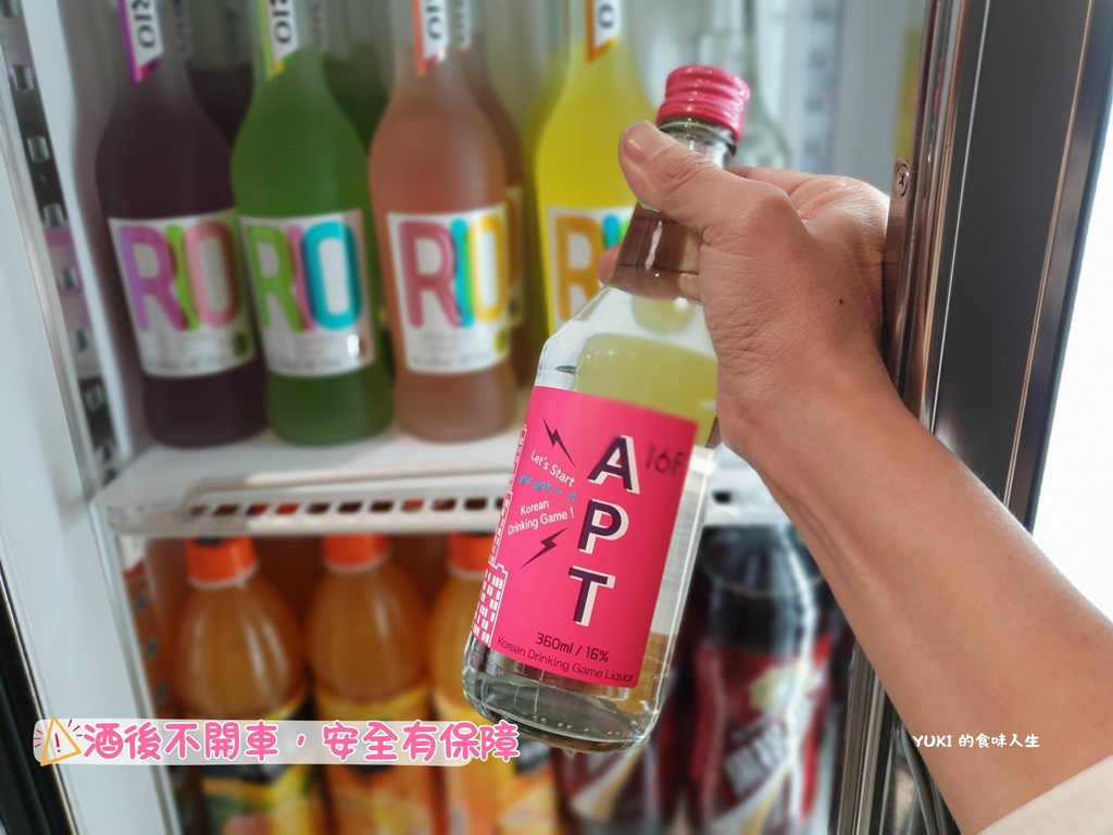 來自韓國熱燒全球的洗腦神曲APT的同名APT燒酒~有柑橘香氣喝起來好清爽又順口,冰涼喝最對味~