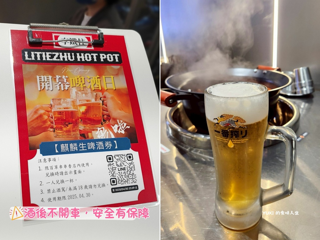 我們用餐當天有現場活動,只到2025.04.30,是掃碼加入「李鐵柱百草串串香」官方LINE群,就可以兌換一杯麒麟生啤酒!!![]()