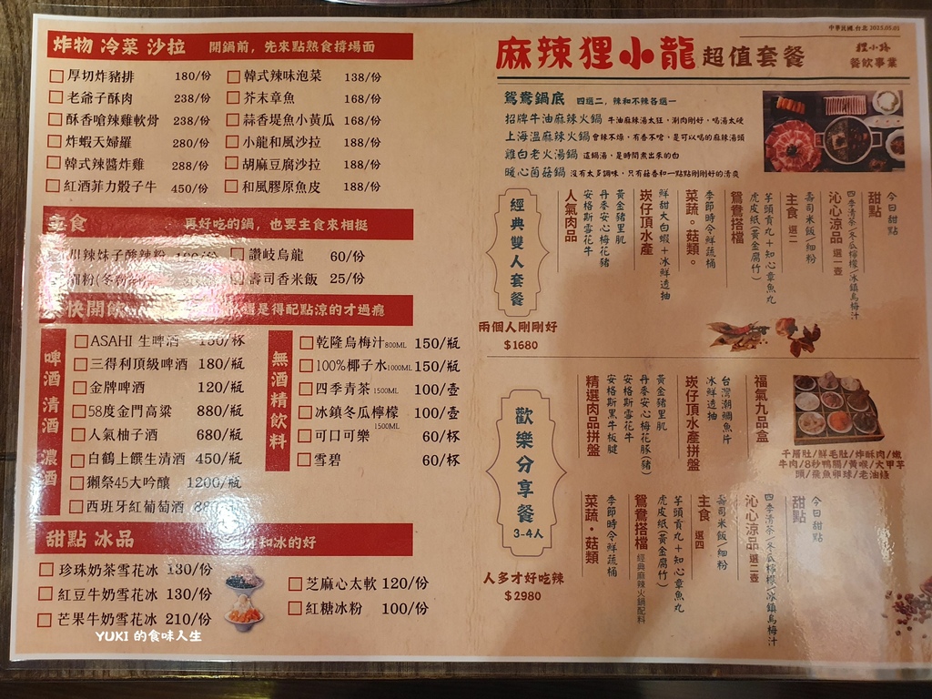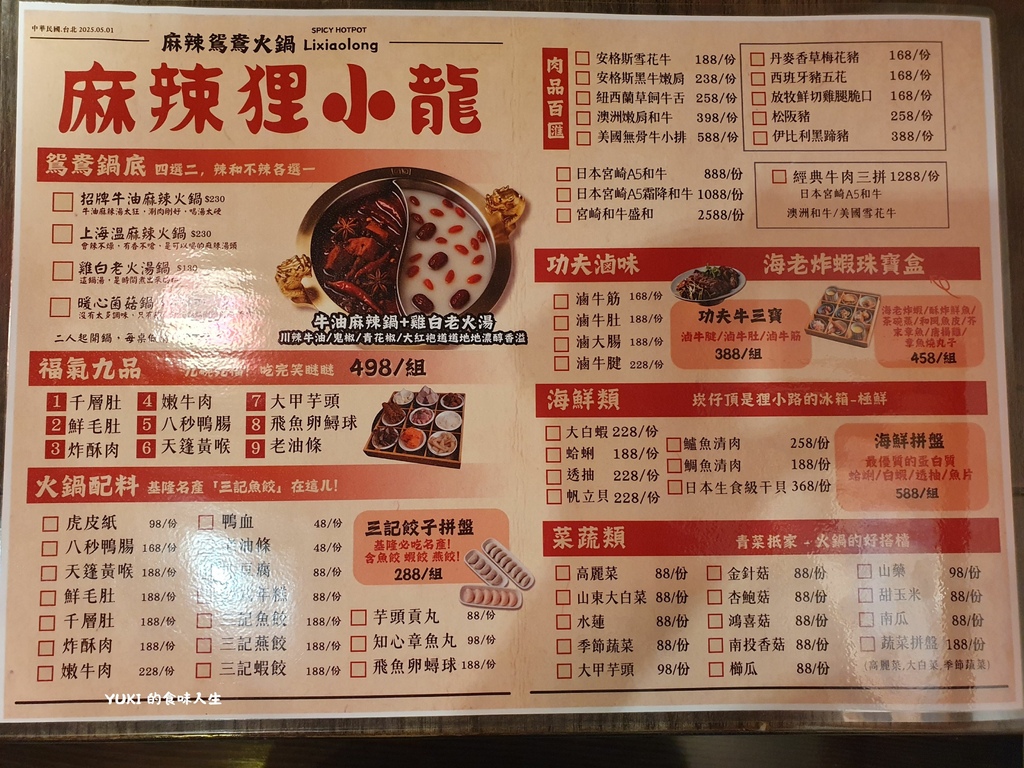 麻辣狸小龍 麻辣鴛鴦火鍋菜單