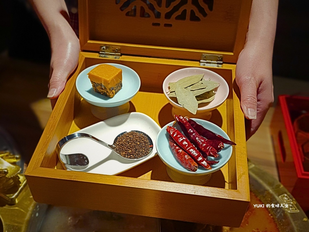 最特別的就是另外提供牛油塊、花椒、月桂葉、乾辣椒,加到上海溫麻辣火鍋湯頭後,會搖身一變為「招牌牛油麻辣火鍋」