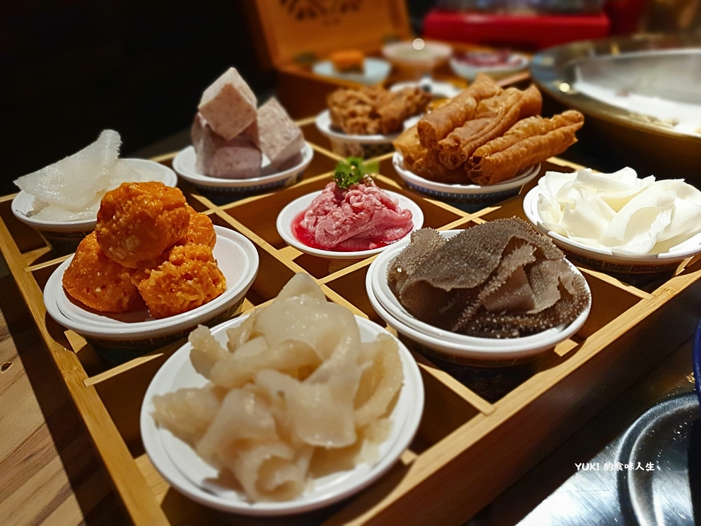 九宮格裡的每一道都是特選菜品,有千層肚、鮮毛肚、炸酥肉、嫩牛肉、鴨腸、黃喉、大甲芋頭、飛魚卵鱘球、老油條等。不只吃的巧,更品的到鮮!