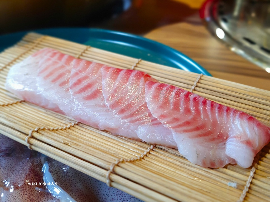 ▼台灣潮鯛魚片 漁市當天新鮮的鯛魚,肉質細緻彈牙,涮紅湯或白湯都很適合,就只有「鮮美」兩個字能形容。