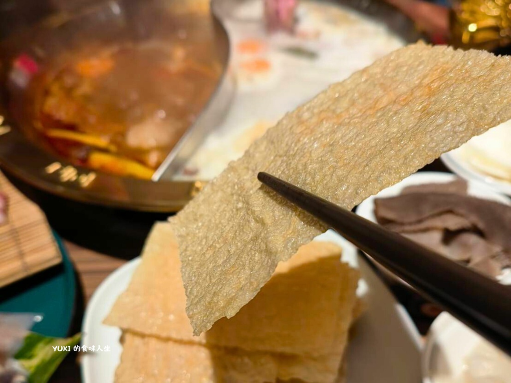 ▼虎皮紙(黃金腐竹) 這薄如紙張的腐皮,吸附湯頭後滑溜順口,每一口都是幸福