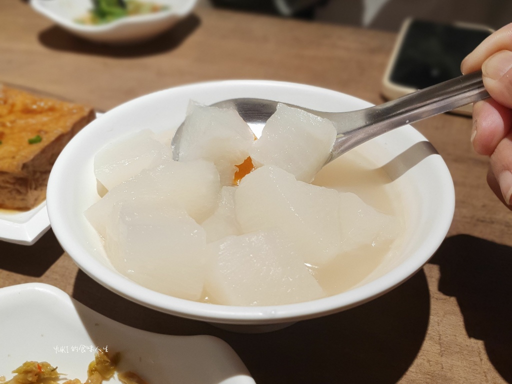 湯品部分我們是選了那種媽媽會煮的家常湯味金針湯跟蘿蔔湯 。金針湯味道清爽,淡淡的香氣很舒服;蘿蔔湯的蘿蔔燉得非常透,湯頭中帶點自然的甘甜,份量也比想像中多,很適合兩個人一起分食。