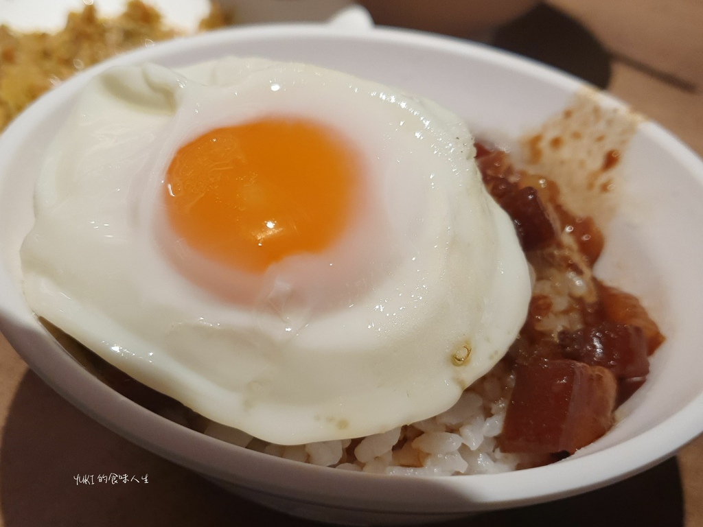 魯肉飯(小),對女生來說份量剛剛好,淋上滿滿滷汁,鹹香撲鼻。肥瘦比例適中,入口即化但完全不膩,加上一顆半熟荷包蛋,蛋黃輕輕劃開後,與鹹香的滷汁融合,整碗飯的香氣和層次又更上一層。