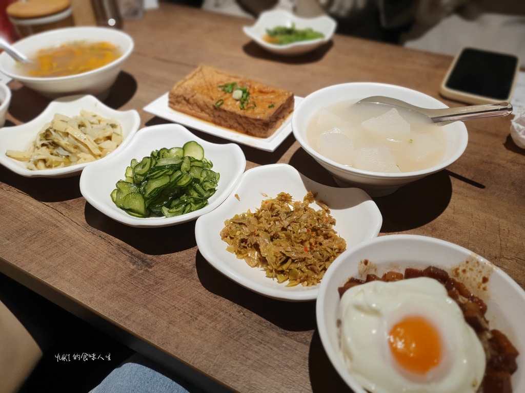 滷筍絲帶點微酸的爽脆感,口感清爽,剛好平衡滷肉的油香;醃小黃瓜則是清脆又開胃,是很討喜的小菜選擇。這幾樣配著魯肉飯一起吃,真的是一口接一口停不下來。