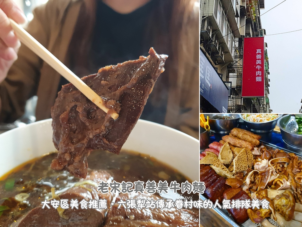 「老宋記真善美牛肉麵」位在 台北市大安區安居街47號,鄰近捷運六張犁站,走路大約 6 分鐘。店面外觀不特別華麗,卻常常能看到排隊人潮。