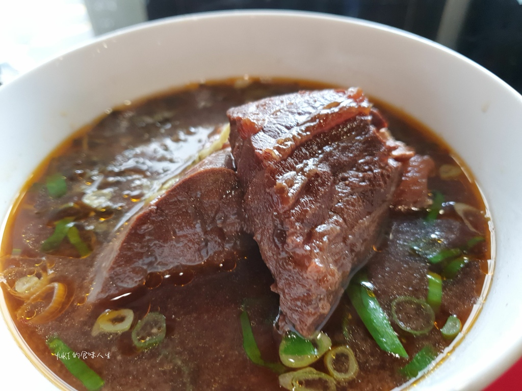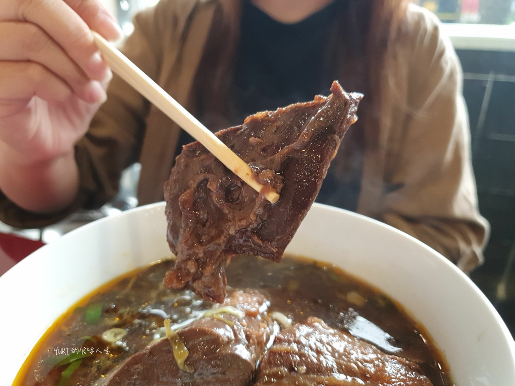 紅燒牛肉麵湯頭濃郁,帶著淡淡中藥香氣,牛肉塊燉得軟嫩入味。